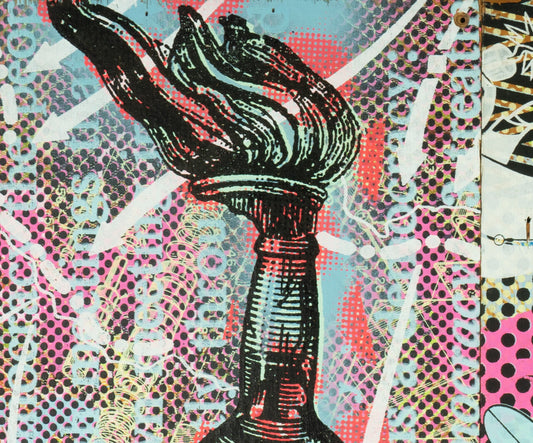 Through his process—equal parts destruction and rebirth—Durt channels the industrial energy of screen printing into a form of visual combustion.