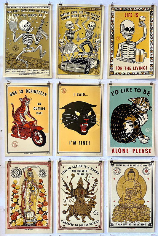 Ravi Zupa considers books the best way to experience art. He has spent decades studying books about the art, mythology, religion, and history of cultures from across geography and time. Entirely self-taught, Zupa looks to works by German Renaissance printmakers, Flemish primitives, abstract expressionists, Japanese woodblock artists, and Mughal painters for inspiration. He also frequently incorporates religious iconography from Europe, Asia, and Pre-Columbian Latin America with revolutionary propaganda from around the world. With a distaste for ironic art or the thoughtless appropriation of culture, he integrates seemingly unrelated images in search of something universal. Zupa does not create any of his art digitally; everything comes from his own hand.
