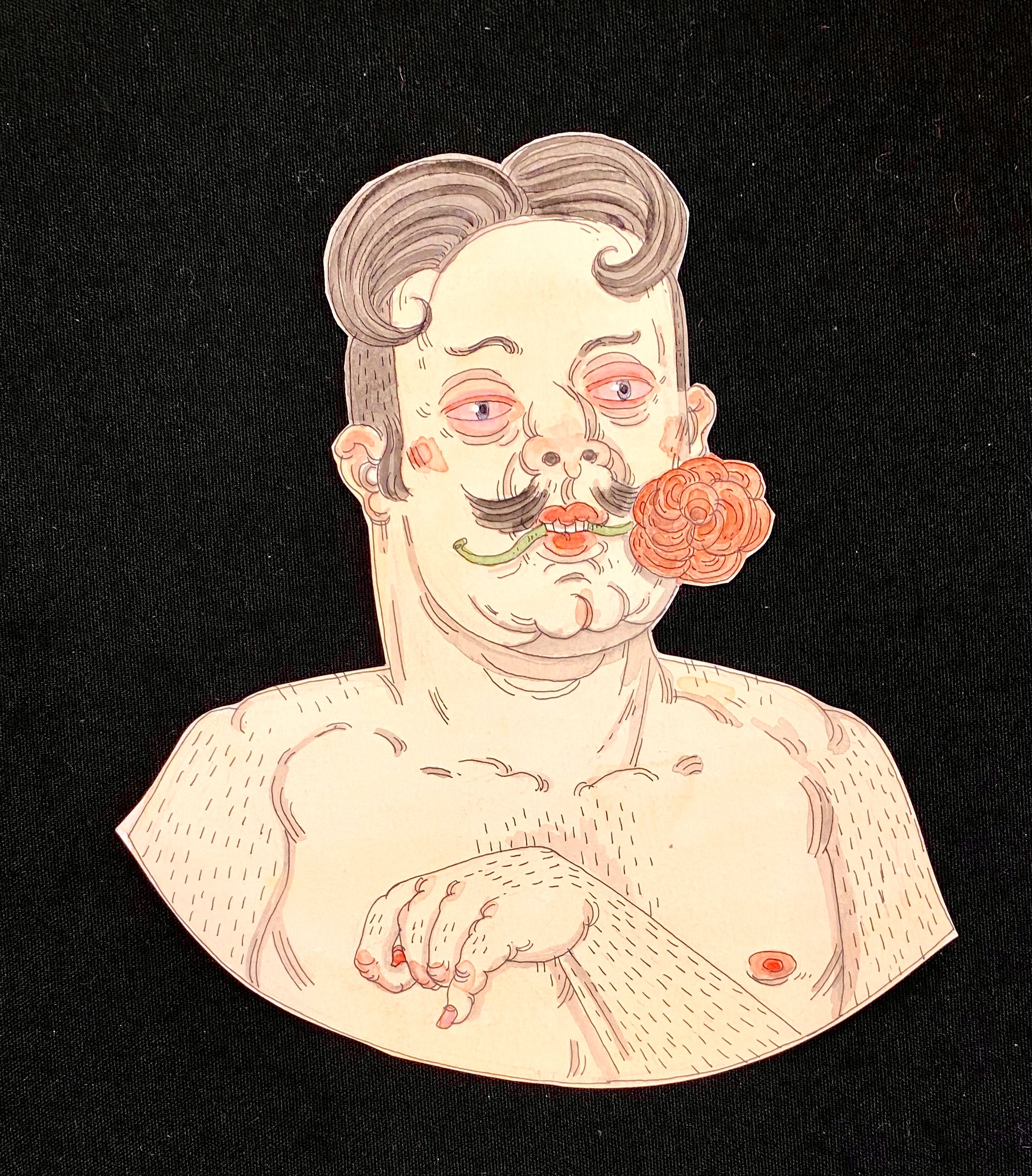 Pencil, colored pencil, watercolor and ink on paper, unframed, 9x7