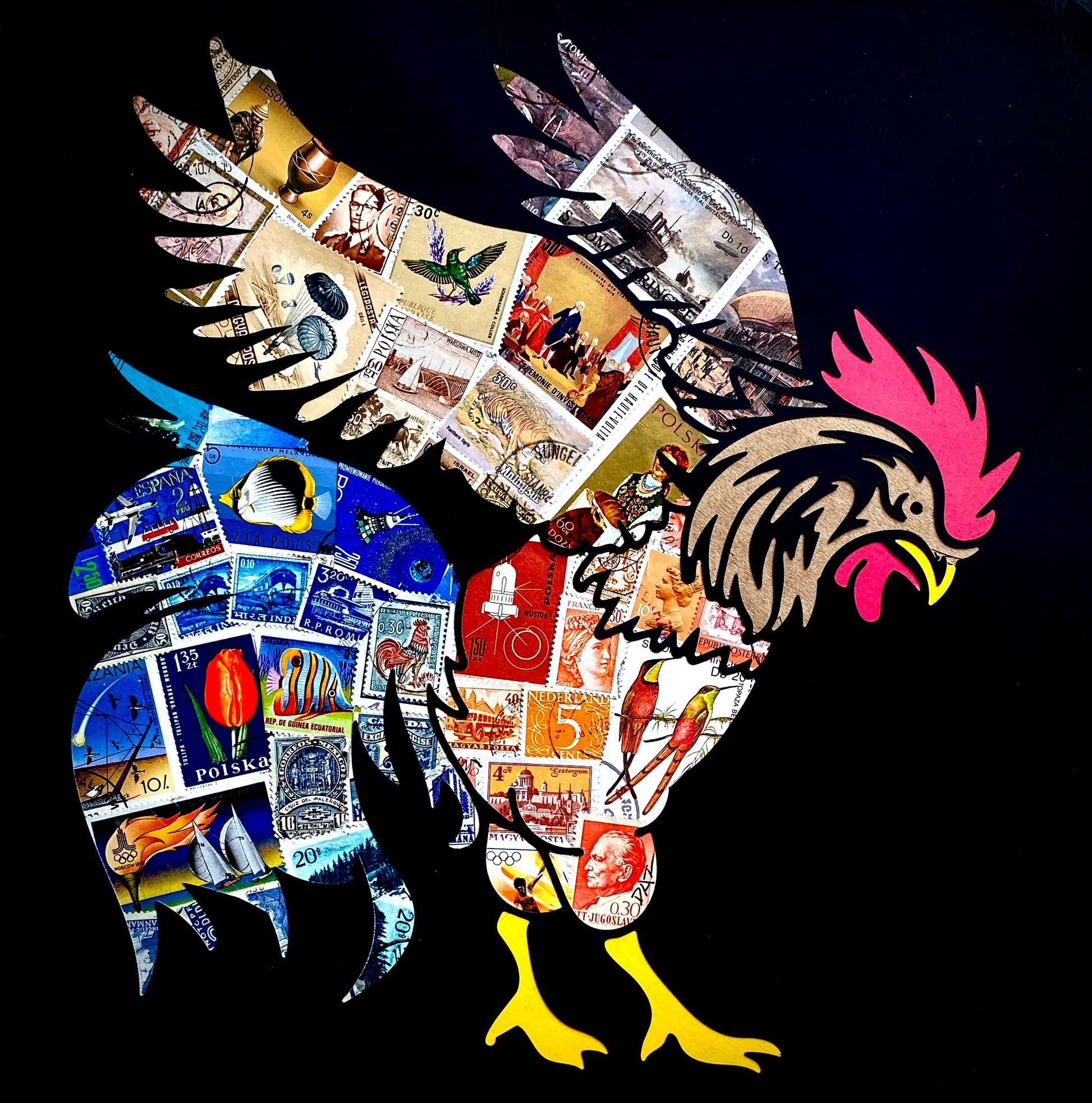 Handmade collage of postage stamps from around the world