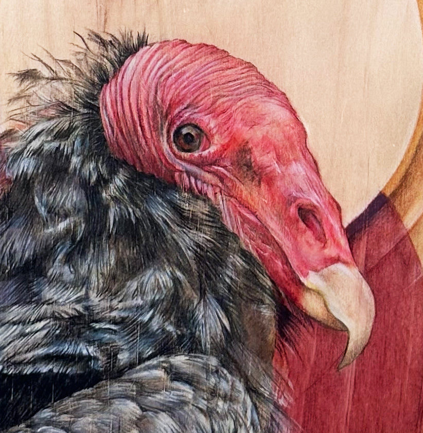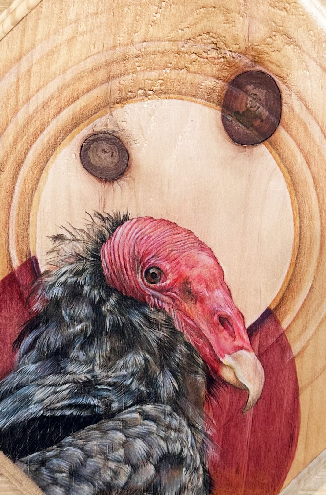 My artwork revolves around the importance of nature and how people today seem to forget that we are a part of the natural world. The subject matter I often depict include animals, plants, skeletons, human figures and decay that I combine into whimsical playful colors or compositions. I use mostly wood as the surface for my detailed colored pencil drawings. I have also begun to experiment with other ways of incorporating and manipulating wood such as staining, painting, layering, cutting and burning to create new work.